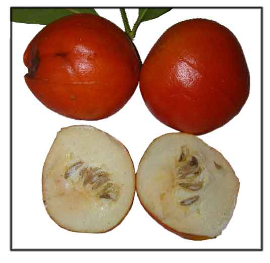• Usually grows into a small tree but also flowers and fruits as a shrub. Twigs, petioles and leaves produce a copious milky exudate when cut or damaged. Leaf blades elliptic to obovate, about 10-33 x 5-13 cm, petioles about 0.5-2 cm long. One leaf of each pair of leaves is usually much smaller than the other. Lateral veins about 12-15 on each side of the midrib, curving but not forming definite loops inside the blade margin. Numerous peg-like glands or processes visible between the petioles and twigs. Short, erect, fleshy hairs usually visible on the underside of the leaf blades. Flowers about 4-7 cm diam. Calyx tube about 18 mm long, lobes about 5 mm long. Corolla tube about 9-24 mm long, lobes about 10-40 mm long. Anthers sessile, about 3 x 1 mm, apex acuminate, base sagittate, attached to the inner surface of the corolla tube about 2-7 mm from the top. Carpels free or slightly connate at the base. Style glabrous, about 19 mm long. Stigma capitate. Fruiting carpels transversely elliptic, up to about 12 x 15 x 10 cm. Aril orange. Seeds dark brown, about 8-13 x 4-7 x 3-6 mm, testa papillose. Embryo curved, about 6-7.5 mm long. Cotyledons suborbicular, about 2.7-4 mm diam., apex truncate, base cordate. (4)