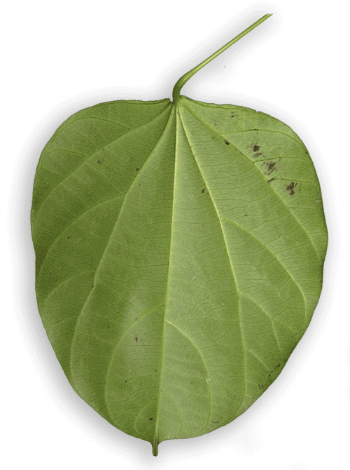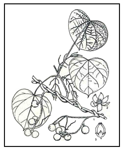 • Growth form: A liana with cup-like petiole scars and injured stem produce yellow sap. Foliage: Petiole is 4 – 20 cm long, swollen at both ends and bend like a knee at the base. Leaves are ovate to elliptic (10 – 25 cm long and 5.5 – 19 cm wide) with rounded or slightly cordate leaf base and acuminate leaf tip. Leaves are palmately veined at the base with 1–3 pairs of secondary veins usually arising from above halfway along the midrib. Veins are prominent on both surfaces and possess hollow domatia in the secondary veins axils on the lower surface. Leaves dry matte with inconspicuous veins pattern. Flowers: Inflorescence is a slender panicle (10 – 50 cm long) and occurs axillary or on stem. Male flower has 3 – 4 tiny outer sepals (less than 1 mm long), 3 + 3 larger inner sepals which are elliptic to ovate (1.5 – 2.5 mm long) and stamens about 0.5 – 1 mm long. Female flower has 6 sepals (2.5 – 4 mm long) which are narrowly oblong and become reflexed. The reduced male organs in the female flower are tiny and scale-like. Female flower also has 3 carpels and a broad stigma. Fruit: Fruits are borne in a branched cluster (5 – 45 cm long) at the axillary or on the stem. Within the branched cluster, fruits usually occur in group of 1 – 3, often forming a club-shape. Each fruit is yellow and appears slightly laterally compressed (2.2 – 3 cm long and 2.5 – 3.3 cm wide), smooth and drying wrinkled. Endocarp is woody and the surface is covered densely with fibers. (45)