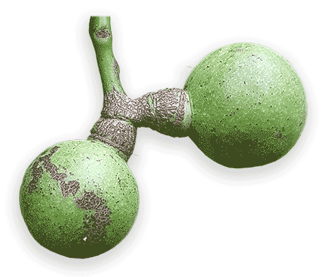 gray bark and yellow wood. Leaves are leathery, smooth, broadly ovate, 16 centimeters wide and 16 centimeters long, the tip abruptly
