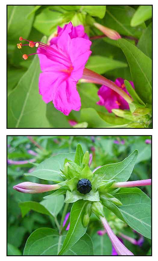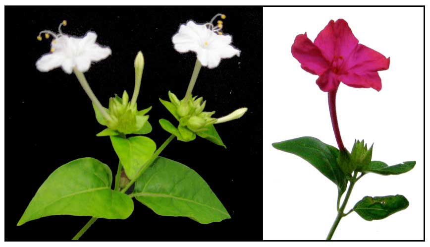 - A curious botanical aspect is that M. jalapa flowers with different colors simultaneously on the same plant. (68)