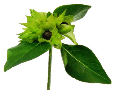 • Induction of Apoptosis / Leaves: The leaves of Mirabilis jalapa contain a protein fraction, ribosome-inactivating protein (RIP). RIP is a group of protein with RNA N-glycosidase activity capable of inhibiting protein synthesis. The protein fraction isolated from the leave of M. jalapa was more cytotoxic to HeLa cell line (LC50 0.65 mg/ml) than to Raji cell line (1.815 mg/ml). It was demonstrated that the death of HeLa cells was due to induction of apoptosis, while that of Raju cell line was due
