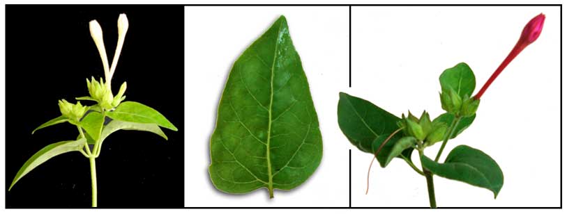 the antifungal activities from root, stems, and leaves extract of Mirabilis jalapa. The methanol extracts of roots and stems showed better inhibition of mycelial growth of Alternaria kikuchiana Tanaka and Collectotrichum orbiculare. (57)