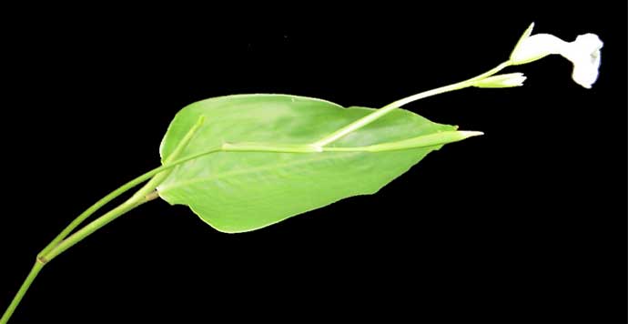 10 to 20 centimeters long, thin petioled, green and rounded at the base. Inflorescence