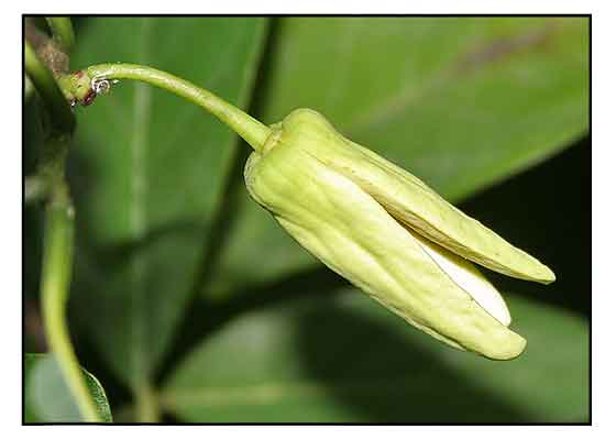 • A small tree with an open, irregular crown. Foliage: Leaves are elliptic to oblong with rounded to acute apex, 5-15 cm long, 2 - 5 cm wide, alternate with entire leaf margins. Flowers: Fragrant yellowish green flowers hang downwards either singly or in groups of 2 - 4. Each oblong flower has 3 elongated outer petals and 3 inconspicuous inner petals, 2.5 - 4 cm long. Fruit: Fruit are usually round with a knobby surface. Sweet and juicy flesh occurs in elongated segments, each surrounding a brown to black, oblong seed (1 cm long). Each fruit has 20 - 40 seeds. (93)