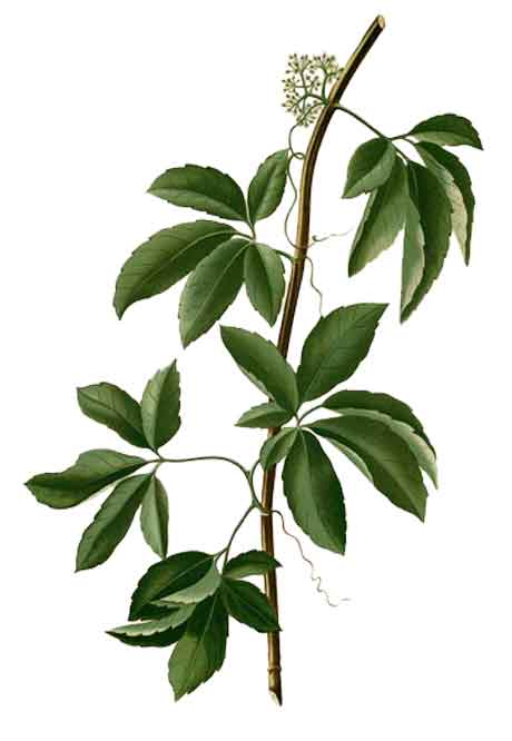 - Plants are lianas that climb with tendrils and have palmately compound leaves.