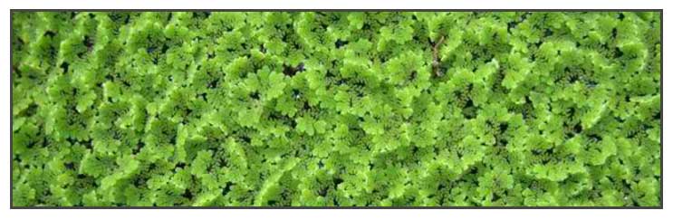 - Azolla is a genus of seven species of aquatic ferns in the family Salviniaceae. They are reduced in form and specialized, looking unlike typical ferns but ore like duckweed or some mosses. It is considered an invasive plant in wetlands, freshwater lakes, and ditches, and can substantially alter aquatic ecosystems and biodiversity. (32)