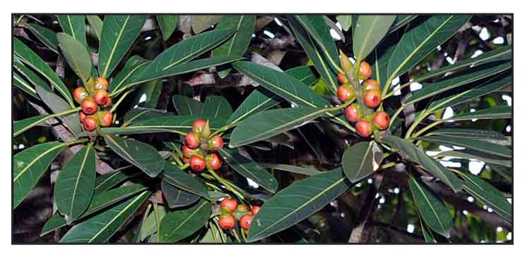 OTHER IMAGE SOURCE: Photograph: Ficus crassiramea -- closeup of fruits  / Tg Aru beach / Copyright © Anthea Phillipps / click on image to go to source apage / Non-Commervial Use / THE FIGS OF BORNEO