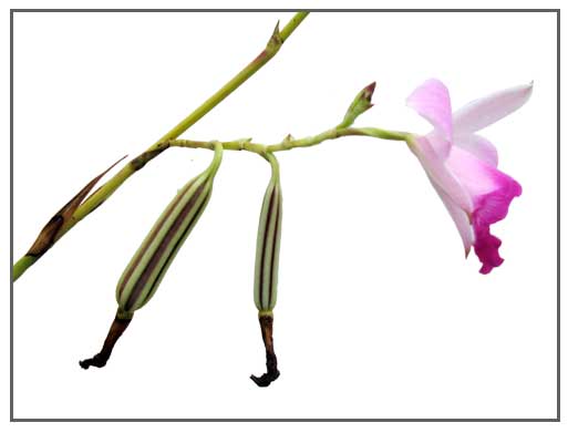 • Transcription Profiling of Flavonoids and Bibenzyls: The bamboo orchid produces large waste after cut flower selection.  Study reports on the identification of important medicinal components in various parts of A. graminifolia. Transcription analysis was performed for five stages of flower developments and four tissue types (mature flower, silique, root, and leaf) to ascertain genetic regulators of flavonoids and bibenzyls. Prominent concentrations of bibenzyl, phenylpropanoid, and flavone were found in major plant parts, such as leaf, root, stem, flower, and fruit, suggesting multiple accumulation of phytochemicals in bamboo orchid. Study suggests the whole plant of A. graminifolia and its short life cycles make it a potential source of bioactive compounds for medicinal purposes than other orchid species. (24)