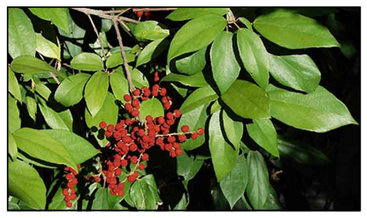 - The red glands of the fruit is antiherpetic and anthelmintic.
