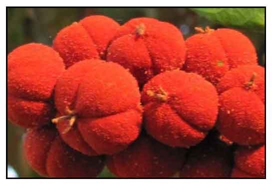 - The red glands of the fruit is antiherpetic and anthelmintic.