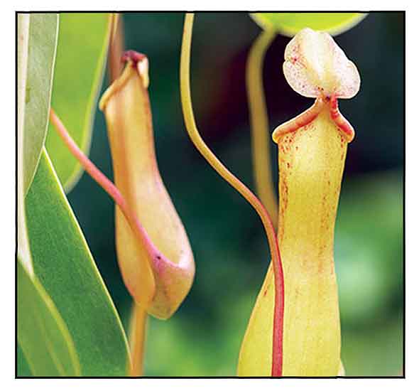 - All species are carnivorous, using its nectar to attract, trap and capture insects and other prey in pitcher-shaped prey-trapping leaves. The insects drown and are digested by the plant enzymes.