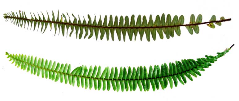 of attachment, leaving a more or less rounded, even-edged depression.) Fronds are simply pinnate, smooth, linear lanceolate, 20 to 60