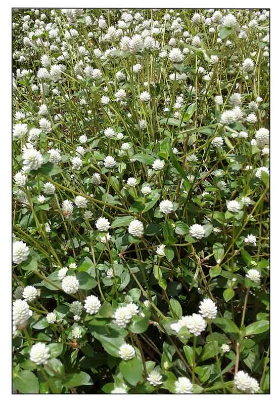 • Phytoremediative Potential / Heavy Metals: In a study of 12 plant species growing around the tailing dam of a gold mine, Gomphrena celosioides was one of five plants with BAF (Bioaccumulation Factor) and TF (Translocation Factor) >1 that showed applicability in extraction of studied heavy metal-polluted soils. (18)