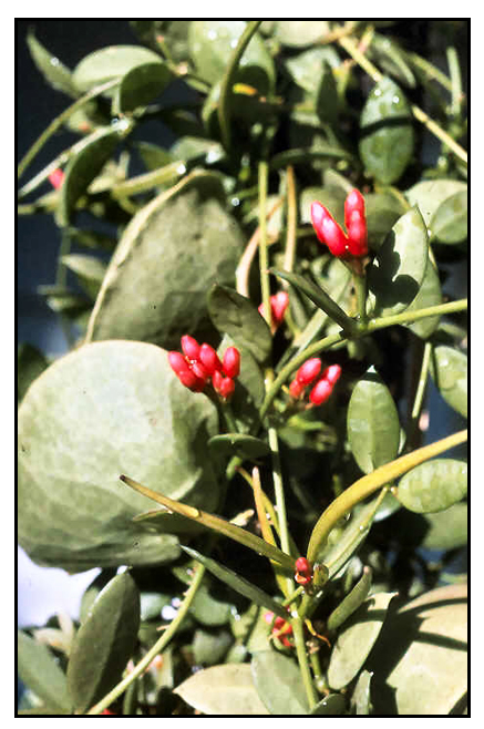 | OTHER IMAGE SOURCE: / DISCHIDIA VIDALII, with bullate laves and seed pods, from the Philippines / click on photo to go to source image and page / rare-hoyas.com |