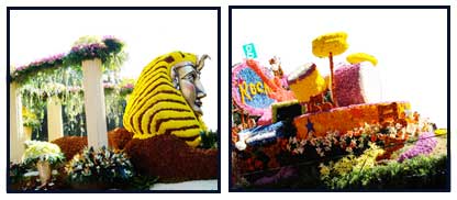 are carried by or hoisted over the parading crowds or pushed through