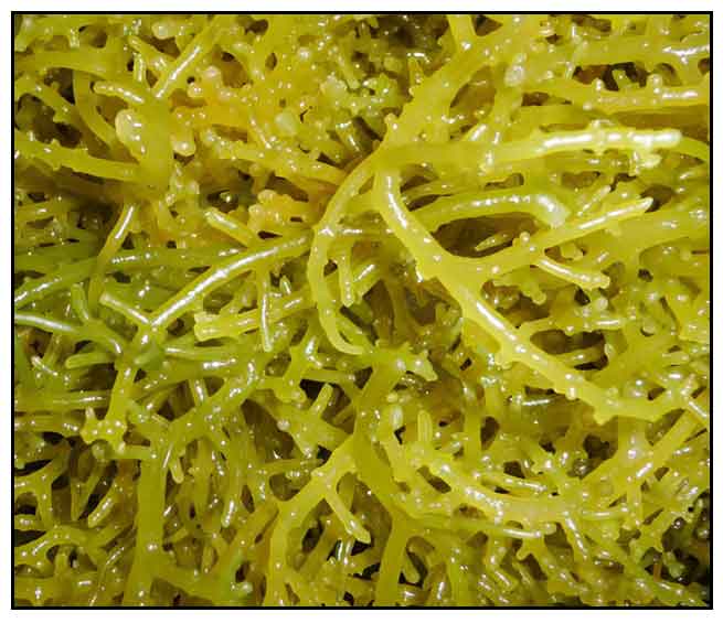 edible alga, 15 to 25 centimeters high, rising from a peltate holdfast. Fronds are elongated, cylindrical, 2