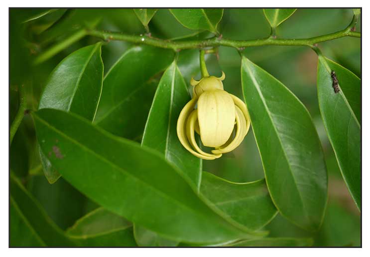 - Flower yields a light, watery, transparent, sweet, and delicate pale yellow essential oil. The EO contains benzyl acetate, benzyl benzoate, linalool, caryophyllene, geranyl acetate, methyl benzoate, p-cresyl methyl ester, safrole, etc.