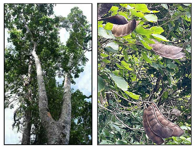 height of 20 to 45 meters and a trunk of 0.5 to 5 meters. Mature trees have steep rounded buttresses.