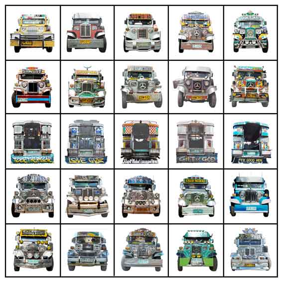 On the art-side of it, most of the jeepneys concentrate the design, colors and accessories on the front end; the back and the sides are commonly almost barren expanses of metal. |