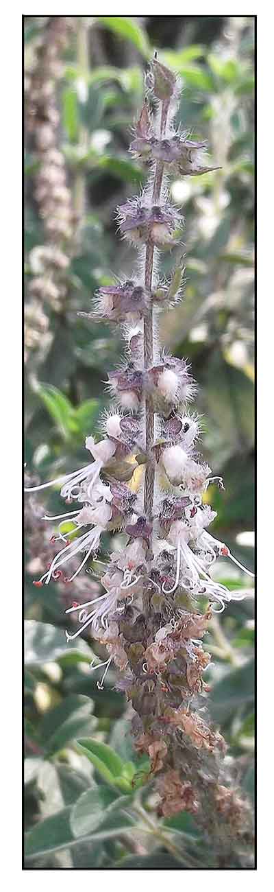 • Kadlum is an erect or ascending, branched, hairy herb 30 to 60 centimeters in height. Leaves are very aromatic, like those of kablin, somewhat smooth, ovate, 5 to 11 centimeters long, toothed in the margins. Flowers are white, and borne in whorls on terminal and axillary spikes which are 6 to 25 centimeters long. Bracts are ovate or lanceolate, and equal to the calyx or a little shorter.