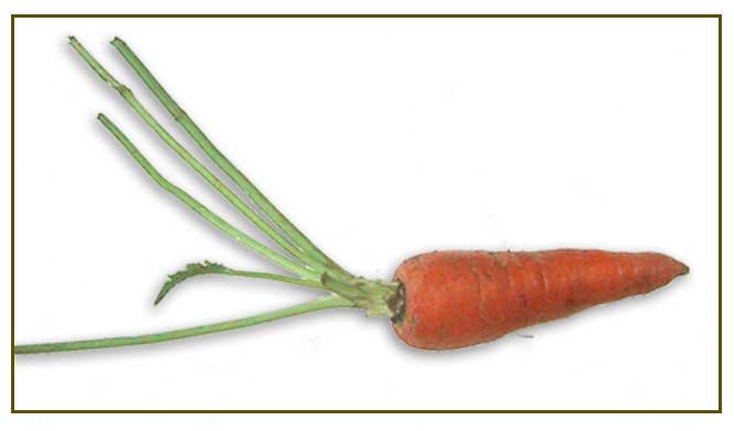 Carrot is an erect, vegetable herb, growing 30 to 60 centimeters in height, with 2 to 3 pinnate leaves, the ultimate leaflet being oblong-lanceolate or linear. Flowers are small, white, or yellow, borne in compound umbels. Fruit is small, ellipsoid, dorsally compressed, bristled and ribbed. The tap root is robust, sometimes swollen, fleshy, and yellow or orange-colored.
