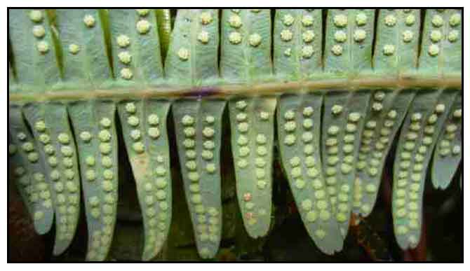 with very large fronds that repeatedly forks, with budlike structures in the forks. Segments are linear or broader. Sori are few and brown on