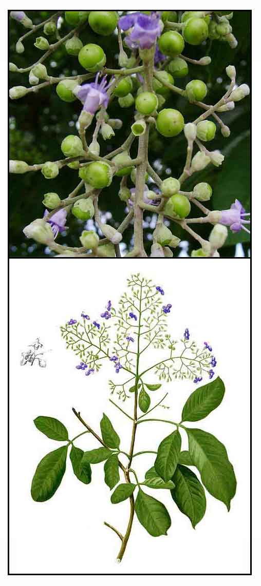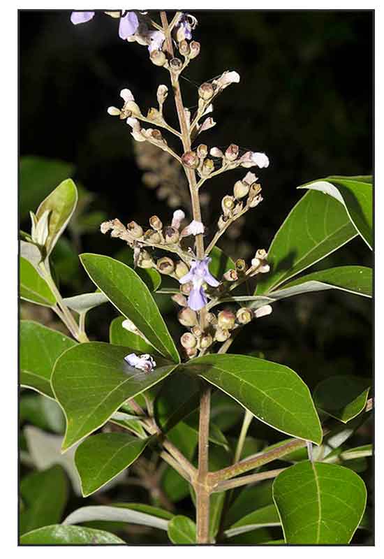• Agnuside / Free Radical Scavenging / Leaves: Study of an ethanol extract of leaves isolated an iridoid, agnuside. On DPPH assay for free radical scavenging, ethanol extract of leaves showed an EC50 of 0.478 mg/mL, more effective than the chloroform extract with EC50 of 0.602 mg/mL. NO free radical scavenging for the ethanol leaf extract showed an EC50 of 0.524 mg/mL, more effective than the chloroform extract EC50 of 0.660 mg/mL. (42)