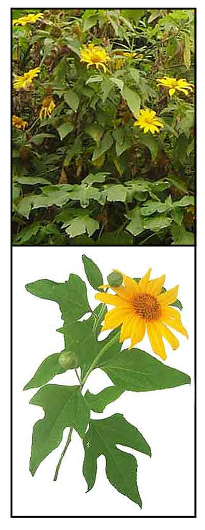 • Mirasol is a coarse, stout and erect annual plant, up to 1 to 3 meters high. Stems are straight, rarely branched. Leaves are opposite at the lower part of the stem, alternate above, ovate, rough, hairy, with toothed margins, long-stalked, 10 to 25 centimeters long. Lower leaves are somewhat heart-shaped. Flower heads are solitary or in clusters, up to 40 centimeters across, made up of 1,000 to 2000 individual flowers connected at a common receptacle. Disk flowers are yellow to brown, with tubular, 5-limbed corolla. Ray flowers are yellow and spreading. Involucral bracts are ovate or oblong.