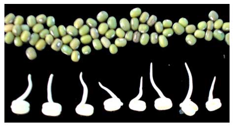 • Effect of Germination on Seeds: The nutritional composition of Vigna radiata seeds were estimated in measures of carbohydrate, free amino acids, protein, chlorophyll and fat content pre- and post-germination and assessed the biochemical changes in seeds. Carbohydrate content was slightly higher after germination. Amino acid and protein content were appreciably increased compared to dry seeds. There was insignificant difference in fat, chlorophyll a and b. Results suggest the nutritional content and quality of seeds improves after germination. (27)