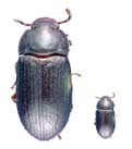 describes it as a cosmopolitan "black fungus beetle," 5.0-6.5 mm length. At 5 mm it could be mistaken as a fly, and at that size could be small enough to do its dastardly mission of invading through body portals.