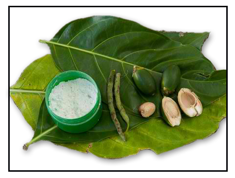 • Buñga (Arecha catechu): Bunga (Areca catechu): The areca nut is not a true nut, but rather, a drupe. It is an essential ingredient, raw or dried, sliced, shredded or cut into pieces and chunam into burnt chalk, coral or sea shells (slaked lime) with a piece of sun dried tobacco for added kick. The nut yields tannin, gallic acid, a fix oil gum, a little terpineol, lignin, and three main alkaloids: arecoline, arcain, and guvacine. It also contains small amounts of pilocarpine and muscarine. The active ingredient in areca is arecoline, constituting about 0.25%. Arecoline is a stimulant, stimulating the parasympathetic nervous system, causing pupil contraction, increasing secretion of tears and salivation.