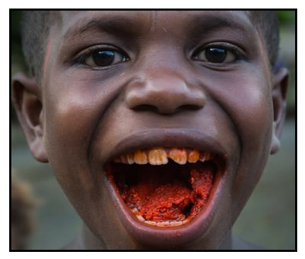 - Chewing-induced red stained lips in women considered marks of beauty.