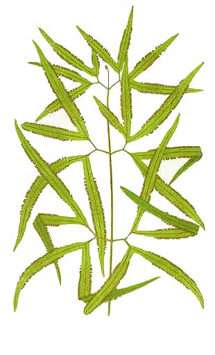 part. Pinnules are stalked, finely serrate, otherwise entire lanceolate or more commonly lobed