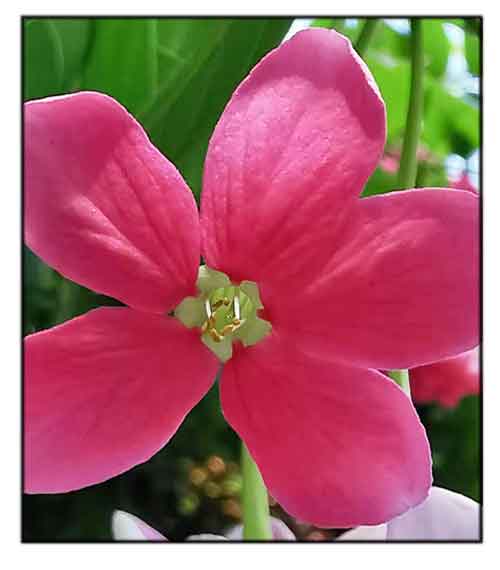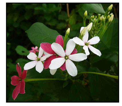 • Antimicrobial Effect / Flowers: In a study of methanol extract of flowers of Q. indica, C. gigantea, P. tuberose, the dry flower extract of Quisqualis indica showed the best antimicrobial property of the flowers studied. (17)