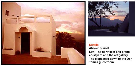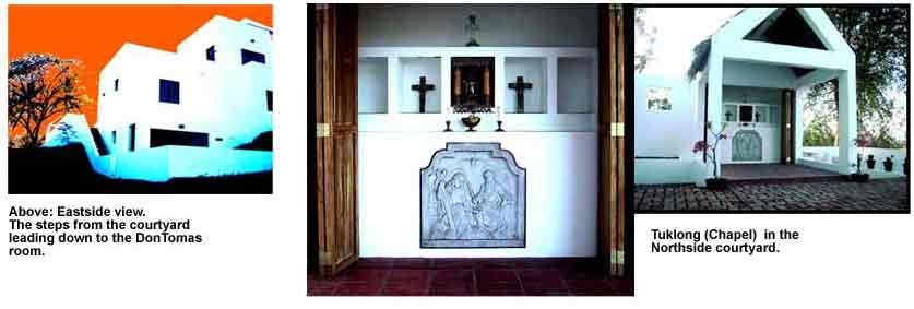 | THE PULANG LUPA COMPLEX IS MY "ARTCHITECTURAL" GRAND OPUS, AN ON-GOING PROJECT THAT STARTED IN APRIL 1998. THE INITIAL DREAM OF A ONE-ROOM SCHOOL HOUSE AND LIBRARY BURGEONED INTO THIS COMPLEX OF BUILDINGS THAT AT PRESENT INCLUDES 7 GUEST ROOMS, A SMALL THEATER, A SMALL LIBRARY, AN ART GALLERY, AN ANTIQUE STORE, WITH A SPACIOUS COURTYARD AND DECKS, AND AN OUTDOOR PERFORMANCE STAGE THAT CAN SEAT 300. (The Construction Story) |