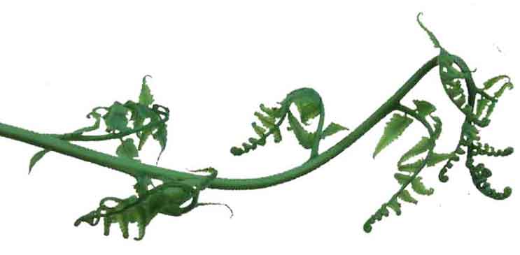 • Growth form: It is a straggling terrestrial fern that grows to 1 m tall with erect rhizomes. Foliage: Fronds are variable in shape, bipinnate, often measure more than 1 m long. Each leaflet is linear, lobed to toothed with a papery texture. Leaflet have a pointed tip, subcordate (almost heart-shaped) to auriculate (ear-like lobes) base. Fronds are held on a long stipe measuring about 0.7 m long. Morphology: Sori linear, arranged diagonally from the midrib to the edge of the leaflet, covering nearly the length of the veinlets. Basal scales are dark brown, toothed with a black margin.