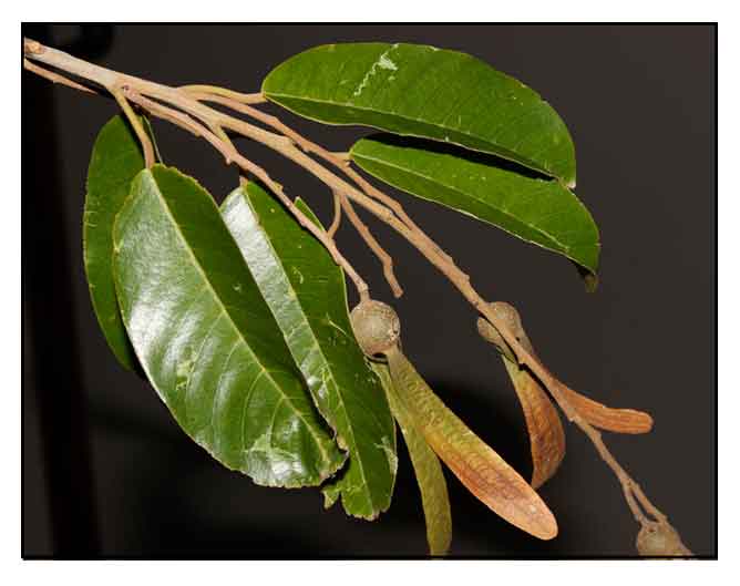 • Anisoptera thurifera is a large-sized tree reaching a height of 40-45 m and a diameter of 140-180 cm. Bole is straight, regular, unbuttressed, three-fifths to two-thirds of the tree height. Bark is 15-25 mm thick, light gray with yellowish tinge and irregular flakes from the bottom. Canopy is dense during the rainy season and open in the dry, at which time it changes leaves. Leaves are elliptic and alternate with pointed apex and rounded base, light green beneath, 7.5-16 cm long and 3-7 cm wide. Fruit is rounded, 4 to 15 mm in diameter, with two wings that are 5-9 cm long and sometimes more than a cm broad. (2)