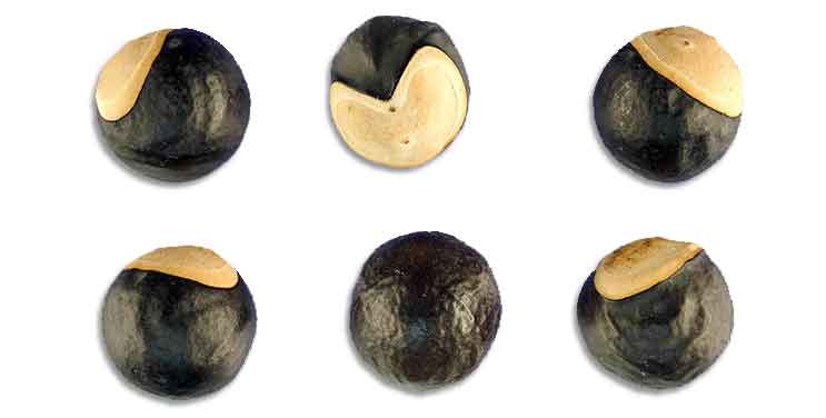 and 3-keeled. Seeds are round and black, with a prominent,
