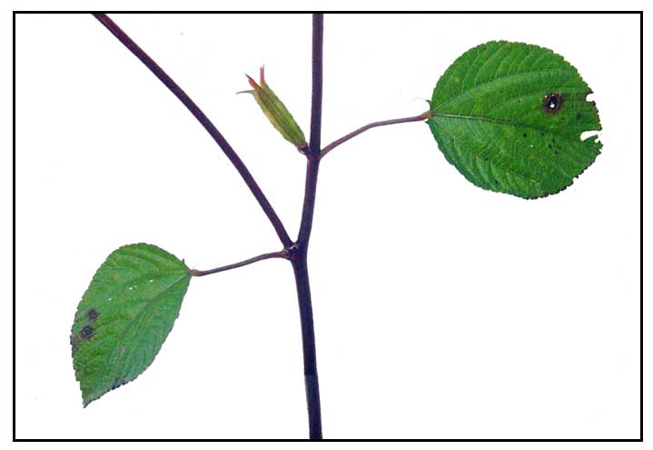 Leaves are ovate-lanceolate, 4 to 12 cms long, pointed at the tip, blunt