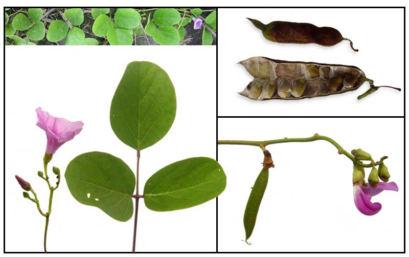Etymology: The genus name Canavalia derives from the Malabar vernacular name, kanavali, for climbing herbs or sub-shrubs. The specific epithet derives from Latin rosea, meaning "rose-like", referring to the pink flowers. (18)