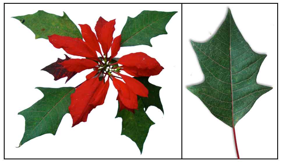 • Poinsettia is an erect, sparingly, and laxly branched shrub, 2