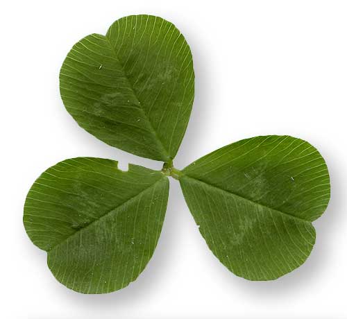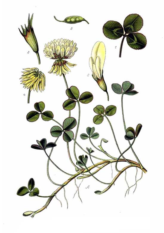 - Etymology: The genus name Trifolium derives from Latin tres, "three", and folium,"leaf", referring to the trifoliate leaf pattern. The species name, repens, is Latin for "creeping".