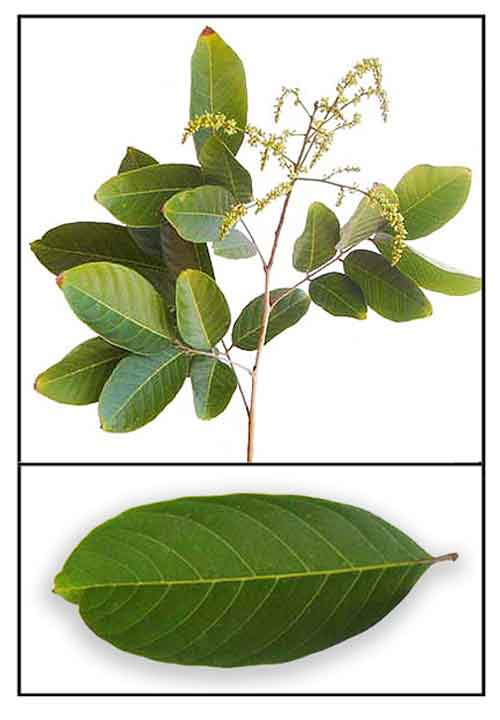 small, without petals, and borne on axillary panicles. Fruit is oblong,