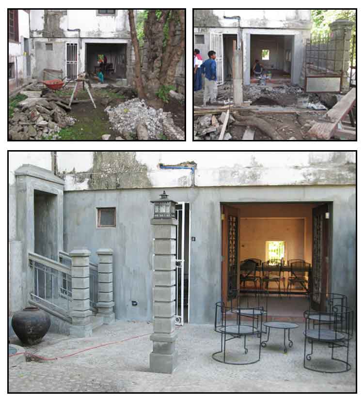 We've been working on this side for almost two months now. It was as much a challenge as any part of the house, starting from a pile of rubble, rooms stripped of cement flakes and doors and walls of rotted wood and rusted yero. Details, details, details. New challenges, new solutions. Slowly, it transformed before us. Cars slow down. Passersby stop by the gate, effusive with comments. It's been a year since the rehab started. An earlier goal of finishing by May 2014 now seems unlikely. I look at what has been done, and what's left overwhelms. |