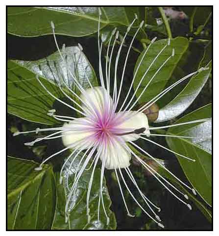 Crateva derives from Crataevus, a Greek botanist in Hippocrates time; religiosa indicates growth near places of worship.