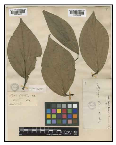 | OTHER IMAGE SOURCE: Piper baccatum Blume / Preserved Specimen Database of China Plant / Identifier: K - Herbarium Catalogue - K000794884 © The Board of Trustees of the Royal Botanic Gardens, Kew. / Europeana: Rights Reserved - Free Access/ Europeana Foundation |