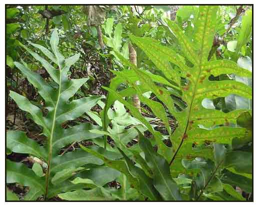 Serpent fern is an epiphyte with wide, creeping and glabrous