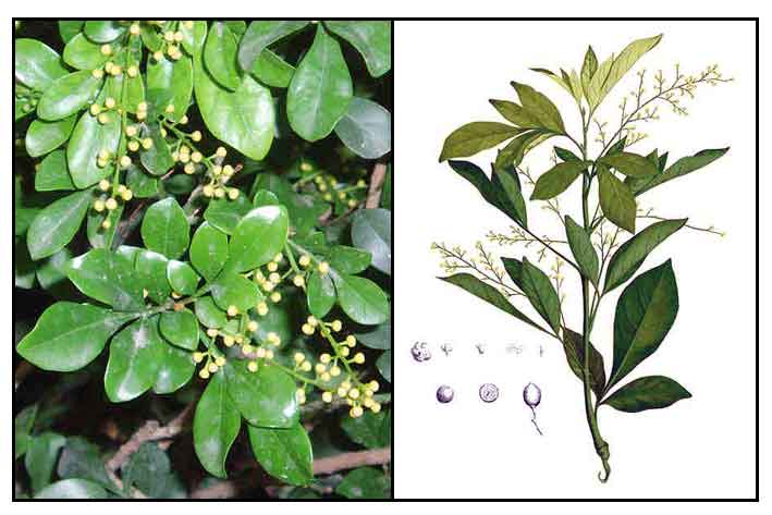 - Branches and leaves yield triterpenoids (aglaiol, aglaiondiol, aglaitrioland aglaione), alkaloids (odorine and odorinol). Flowers yield volatile oil consisting of a-humulene, ß-caryophyllene, ß-cubebene, ß-gurjunene.