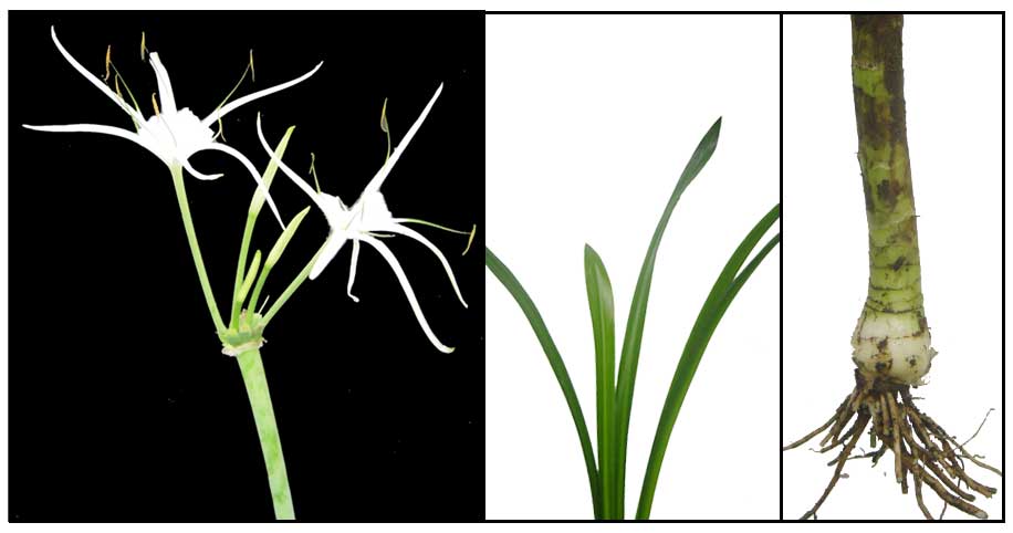 Spider lily is a bulbous, herbaceous plant. Leaves are fleshy, crowded, dark green and