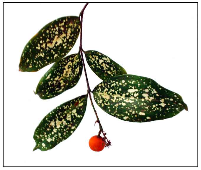 Dracaena surculosa is a small, slender shrub growing up to 2 meters, with wiry spreading stems. Leaves are opposite or whorled, elliptic or oblong-elliptic and cuspidate. Blade is thin, glossy, deep green with numerous, irregular small, yellow spots, with entire margins. Flowers are greenish. Fruit is a red berry.
